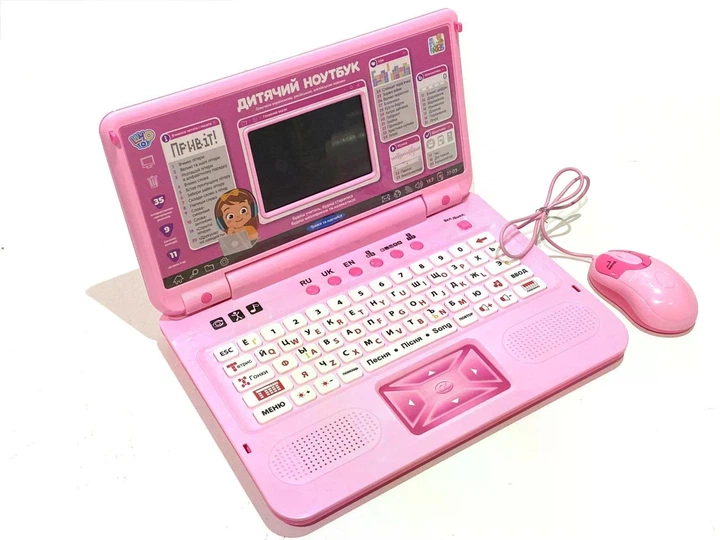 Дитячий комп'ютер ноутбук Навчальний Limo Toy SK 7443 з мишкою українською-російською-англійською мовами (35 функцій) Рожеви