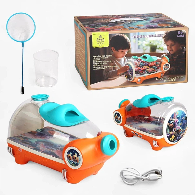 Акваріум NQ 001 (6) підсвічування, компресор, від вбудованого акумулятора/від мережі, кабель type-c, збільшувальна лінза, са