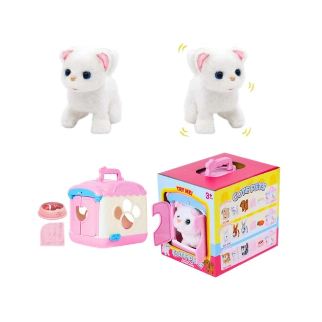 Інтерактивне кошеня для дітей 933-71E, дитяча м'яка іграшка з переноскою та аксесуарами, звукові ефекти, рух та хвіст