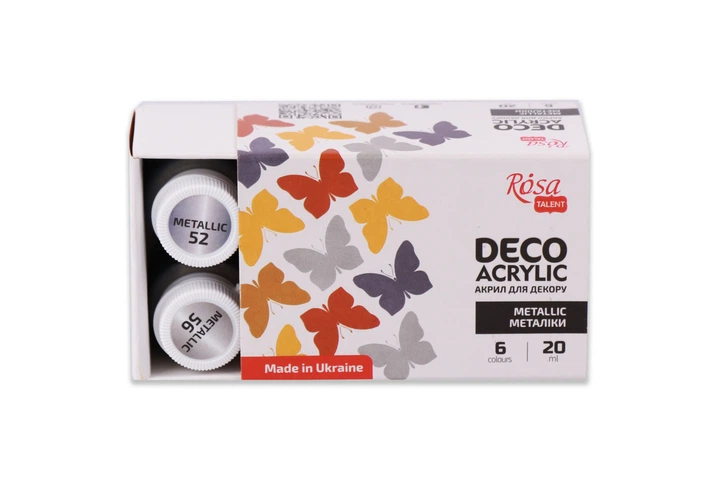 Набір акрилових фарб для декору, металіки, 6 кольорів по 20мл, ROSA ТАLENT, для дерева, картону, творчості, рукоділля