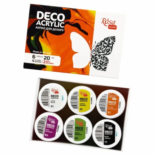 Набір акрилових фарб Rosa Talent набір 6кол. по 20мл флюоресцентна 90747268