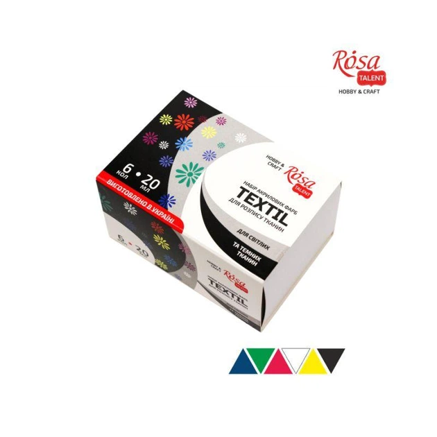 Фарби акрилові для розпису тканини Rosa Talent набір 6кол.x20мл.