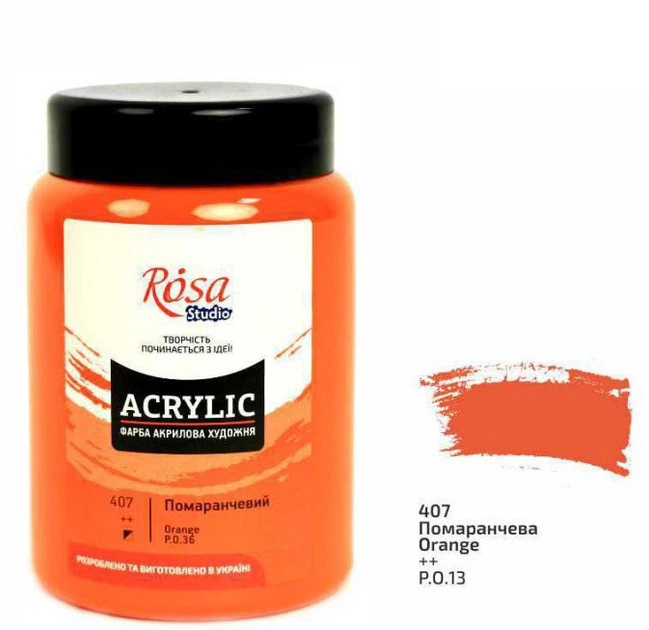 Фарба акрилова матова Rosa Studio Помаранчева (407) 400 мл (322419407)