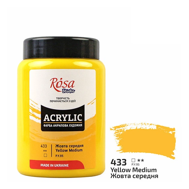 Фарба акрилова матова Rosa Studio Жовта середня (433) 400 мл (322419433)