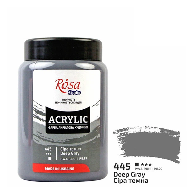 Фарба акрилова матова Rosa Studio Сіра темна (445) 400 мл (322419445)