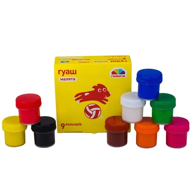 Дитячі гуашеві фарби "Малята" 100202, 9 кольорів