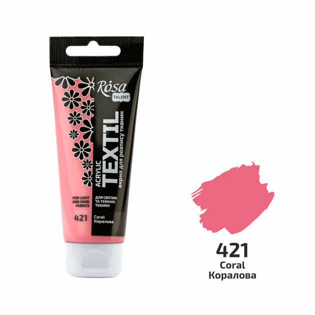 Комплект 4 шт. Фарба акрилова для тканин, Коралова (21), 60мл, ROSA Talent 263460421 4823098523314