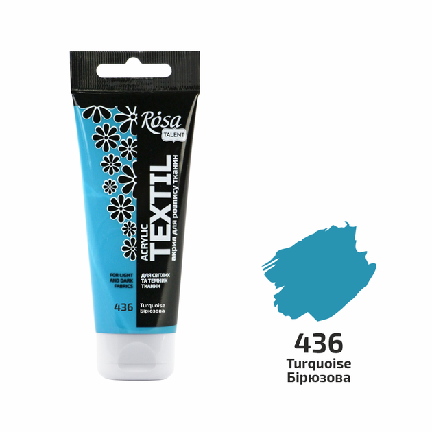 Комплект 4 шт. Фарба акрилова для тканин, Бірюзова (36), 60мл, ROSA Talent 263460436 4823098526087