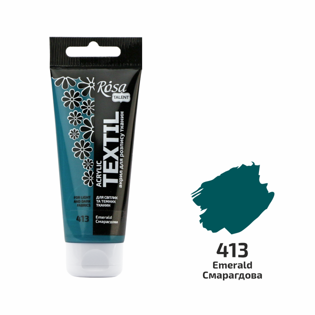 Комплект 4 шт. Фарба акрилова для тканин, Смарагдова (13), 60мл, ROSA Talent 263460413 4823098523185
