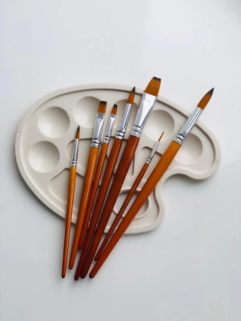 Набір пензликів для малювання 7 шт з палітрою для фарби