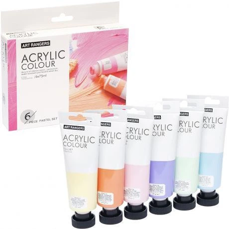 Акрилові фарби для малювання 6 кольорів, по 75 мл, пастель у тюбиках Art Rangers