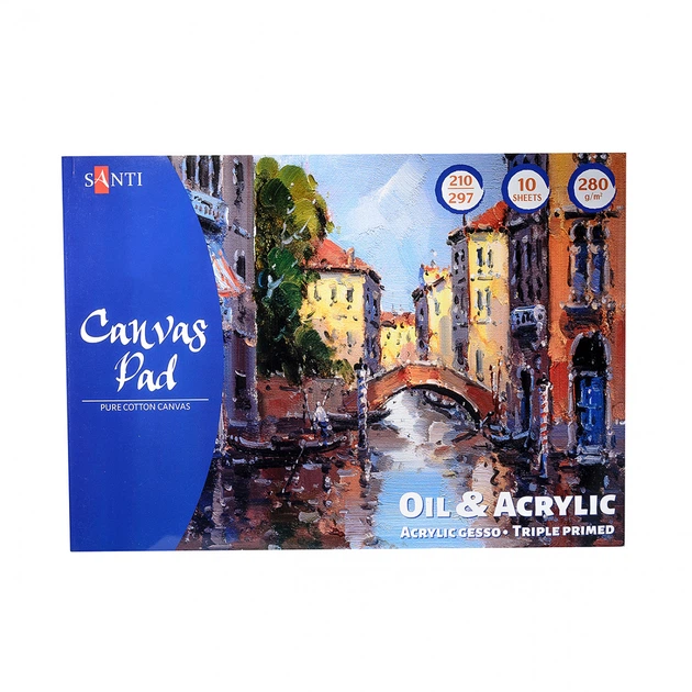 Склейка А4 бавовняне полотно для олійних та акрилових фарб 280 гм 10 аркушів Santi, 742550
