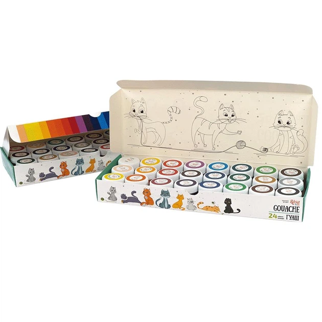 Набір гуашевих фарб 24*10мл, ROSA Kids Cats Гуашева фарба для дітей дошкільного віку від українського виробника ROSA