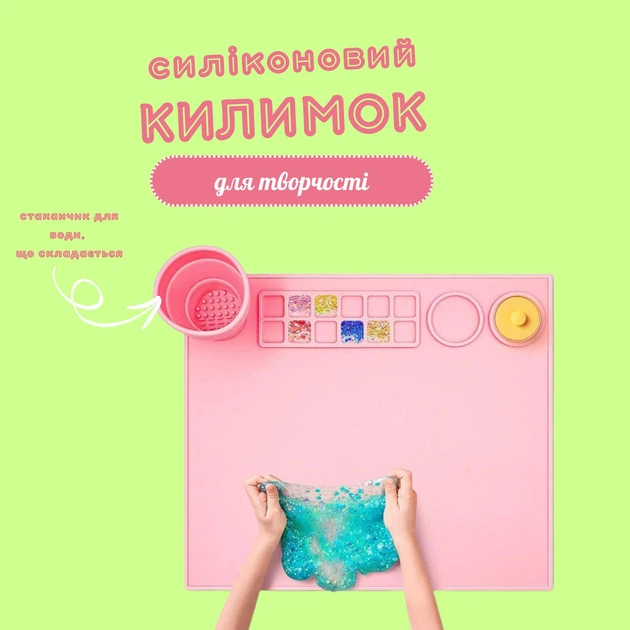 Силіконовий килимок для малювання і творчості з палітрою для змішування фарб (рожевий)