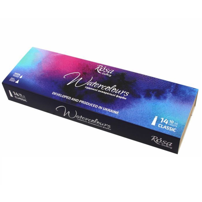 Акварельні фарби Rosa Gallery Дерев'яний пенал 14 кольорів по 10 мл (4823098514008) 4823098514008