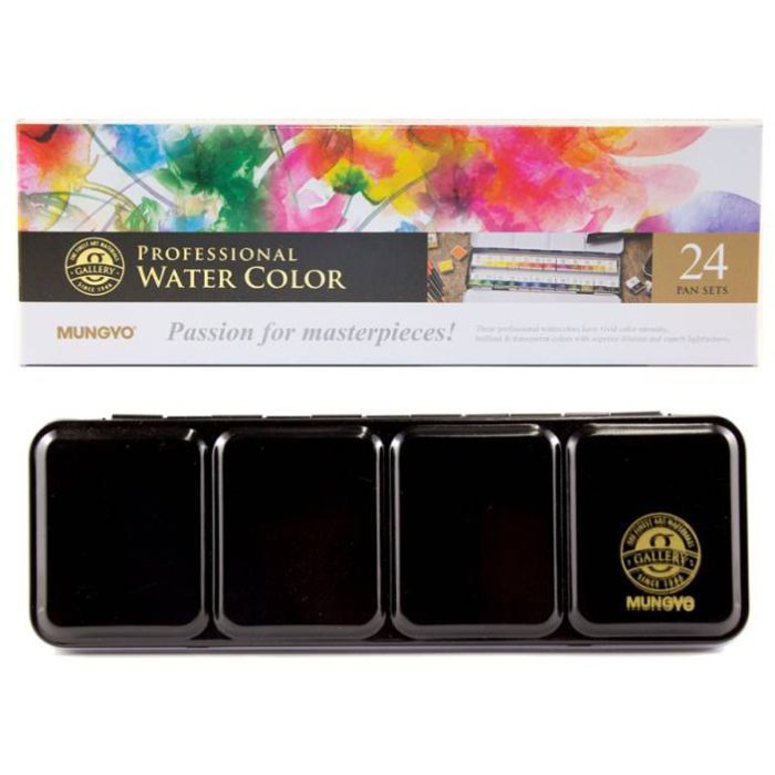 Акварельні фарби MUNGYO Gallery 24 кольору в напівкюветах металевий пенал (8804819109242) 8804819109242