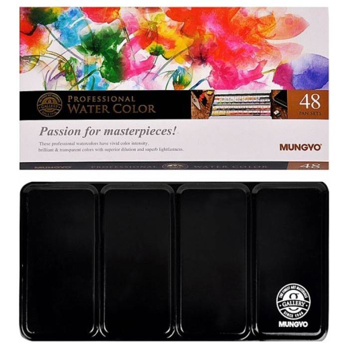 Акварельні фарби MUNGYO Gallery 48 кольорів в напівкюветах металевий пенал (8804819109488) 8804819109488