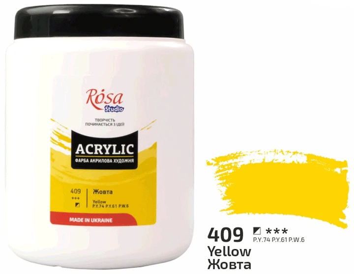 Фарба акрилова Rosa Studio Жовта 409, 1000 мл (4823098531586)