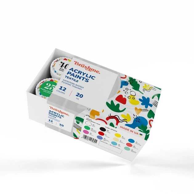 Акрилова фарба для розпису тканин. Набір 12 кольорів 20мл