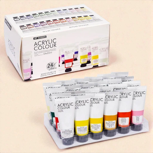 Акрилові фарби художні, набір 24 кольори по 22 мл, тюбики в коробці