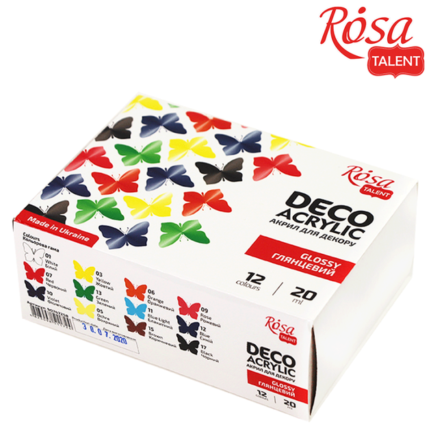 Набір акрилових фарб для декору глянсовий 12кол 20мл ROSA TALENT