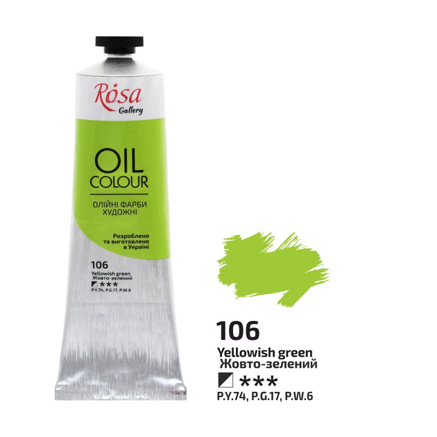 Комплект 3 шт. Фарба олійна, Жовто-зелений (106), 100мл, ROSA Gallery 3263106 4823098501572