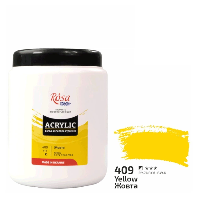 Фарба акрилова матова Rosa Studio Жовта (409) 1000 мл (322001409)