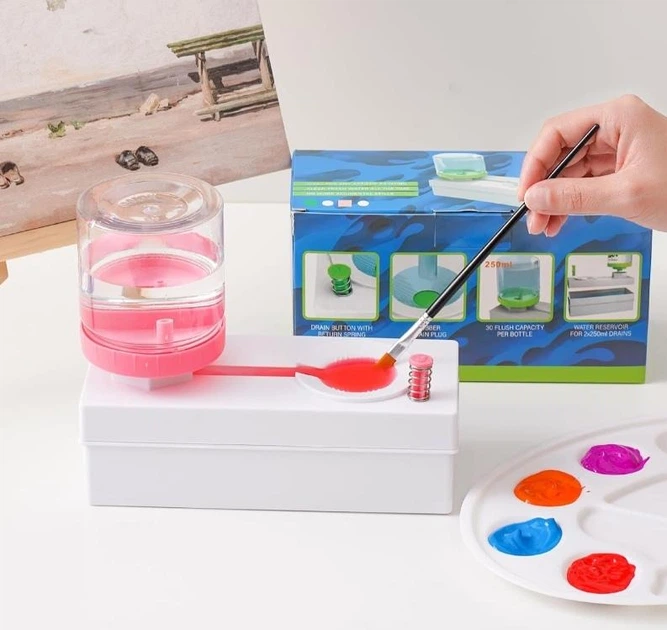 Портативний ополіскувач для фарб для кистей зі зливом води, 250 мл, рожевий колір