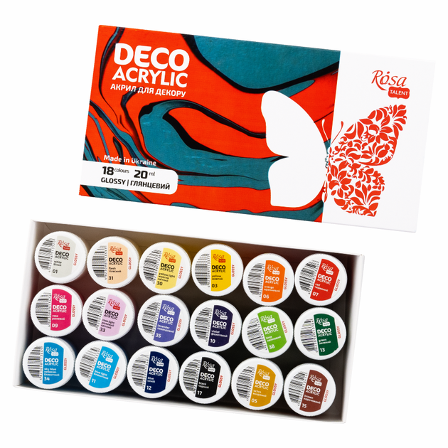 Набір акрилових глянцевих фарб Rosa Talent 18 кольорів по 20 мл (90747265)