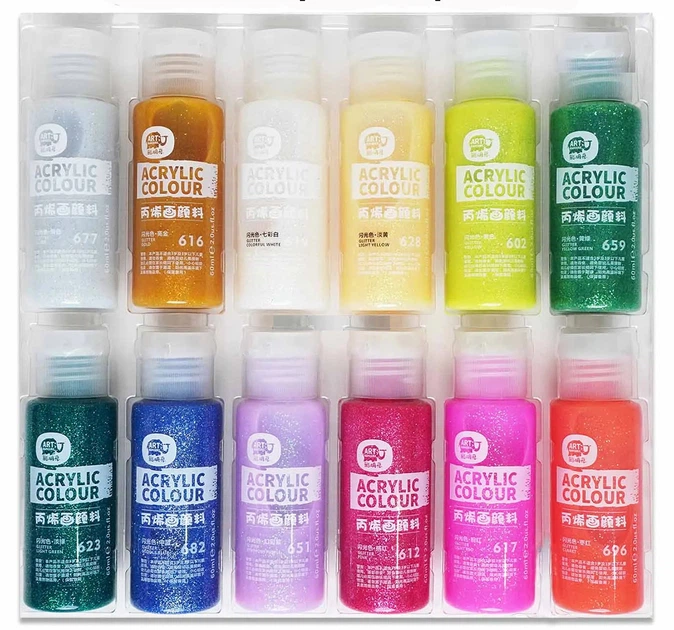 Набір художніх акрилових фарб з блискітками Art Rangers Glitter 12 кольорів по 60 ml