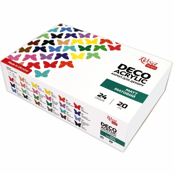 Набір акрилових фарб для декору Rosa Talent матовий 24 кольорів 20 мл баночки в картоні (90747263)