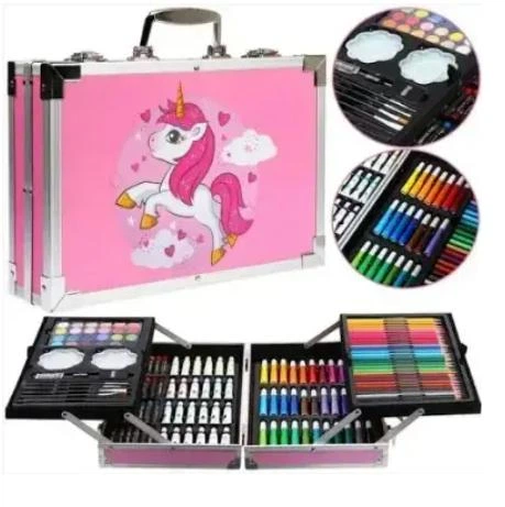 Набір для творчості дитячий фломастери олівці фарби пензлики у рожевому чемодані єдиноріг малювання пастель масло комплект д