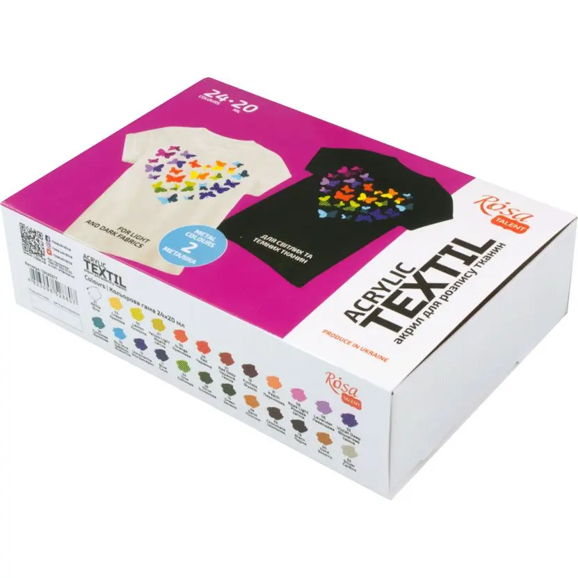 Набір фарб для розпису тканин HEART 24×20 мл Rosa Talent