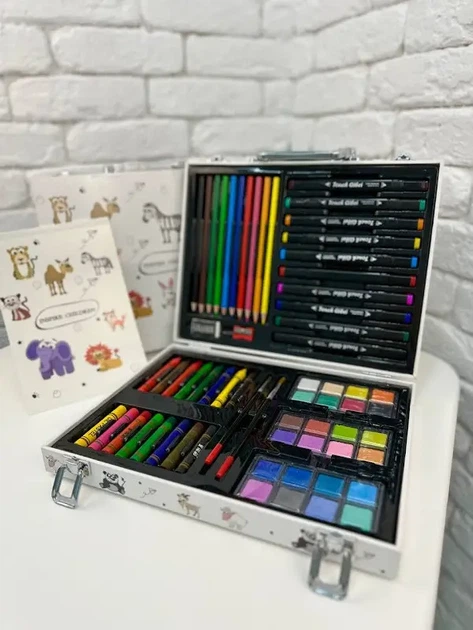 Дитячий набір для творчості, для малювання фарби,фломастери, олівці в комплекті 65 предметів