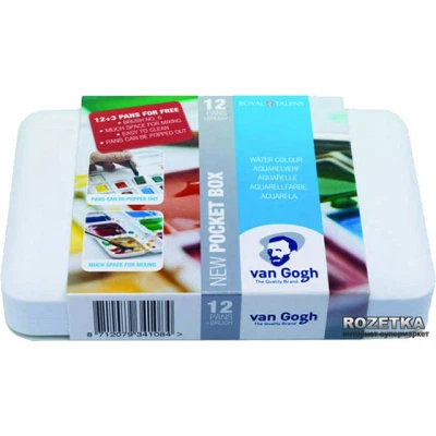 Акварельні фарби Royal Talens Van Gogh 12+3 кольори в кюветах + пензлик, пластик (8712079344955)