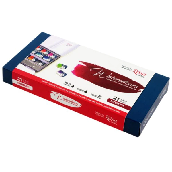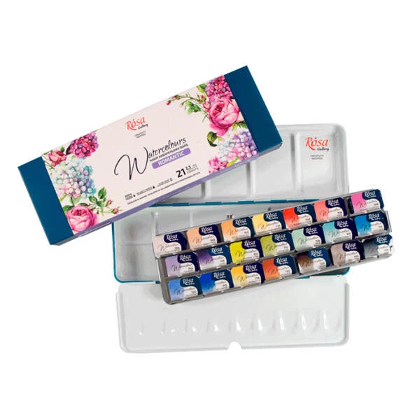 Набір акварельних фарб ROSA Gallery Romantic 21 кільк. 2,5 мл кюветі у металевому пеналі (3403421)