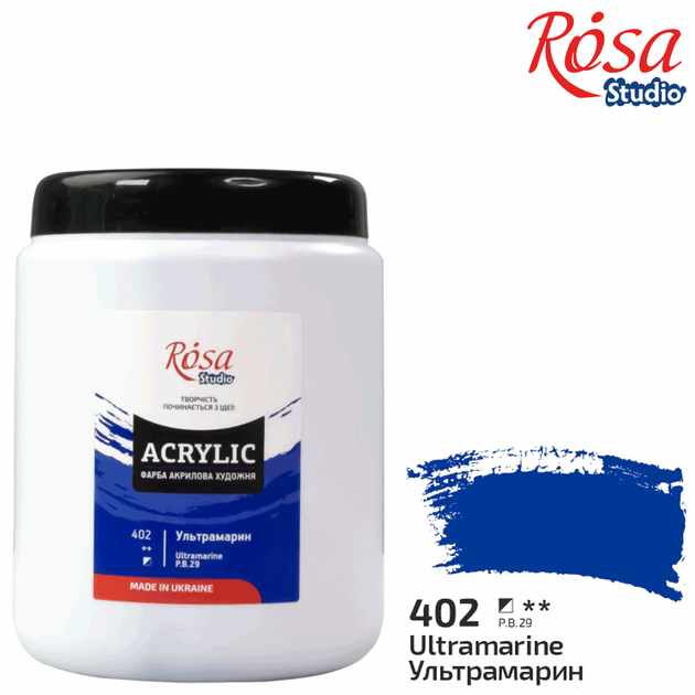 Комплект 4 шт. Фарба акрилова, Ультрамарин (402), 1000 мл, ROSA Studio 322001402 4823098531593