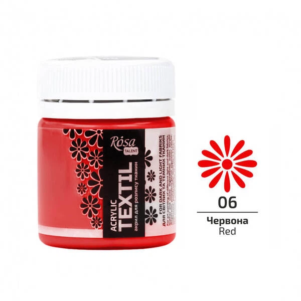 Фарба акрилова, червона 20мл для тканин ROSA Talent (3491)