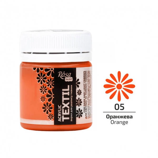 Фарба акрилова для тканини Помаранчева 20мл ROSA TALENT (263405)