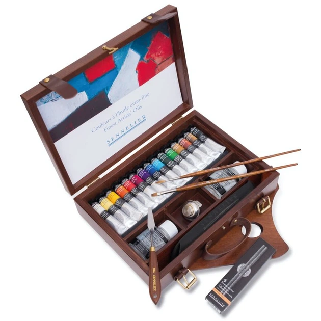 Дерев'яний набір олійних фарб Sennelier Extra-Fine, 15 туб по 21 мл + аксесуари