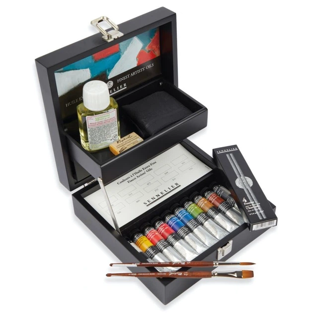 Дерев'яний набір олійних фарб Sennelier Extra-Fine, 10 туб по 21 мл + аксесуари