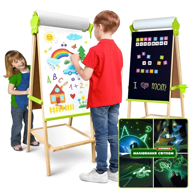Дерев'яний мольберт з поличкою дитячий для малювання фарбами, олівцями, маркерами, крейдою, світлом, творчості та навчання 5