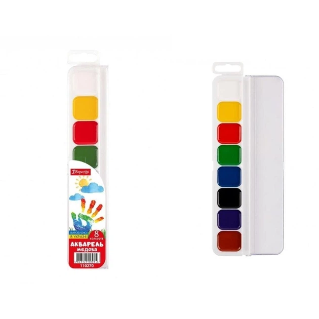 Фарби акварельні 1Вересня 8 цв. медові б/п 110270
