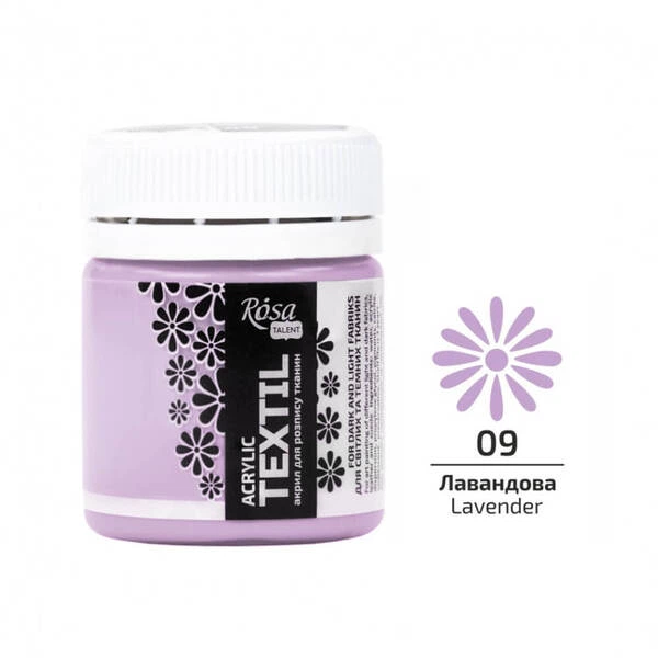 Фарба акрилова для тканини Лавандова (09) 20мл ROSA TALENT (263409)