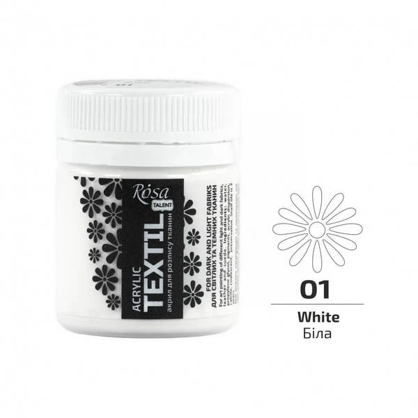 Фарба акрилова для тканини 20 мл ROSA (01) Біла (263401)
