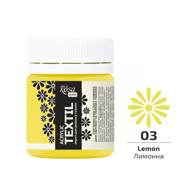 Фарба акрилова Rosa Textil по тканині Лимонна (03) 20 мл (263403)