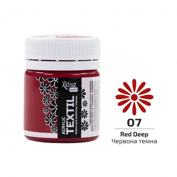 Фарба акрилова для тканини 20 мл ROSA (07) Червона темна (263407)