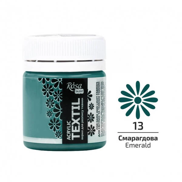 Фарба акрилова для тканини 20 мл ROSA (13) Смарагдова (263413)