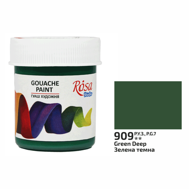 Фарба гуашева Rosa Studio Зелена темна (909) 40 мл (323909)