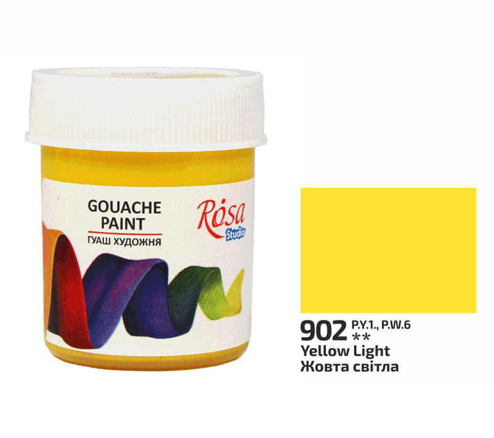 Фарба гуашева Rosa Studio Жовта світла (902) 40 мл (324902)